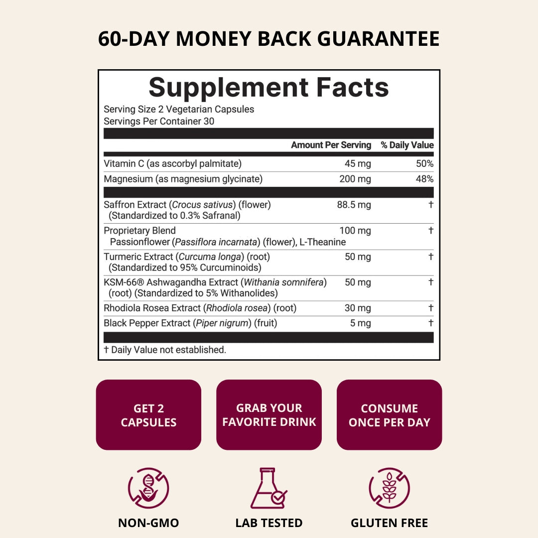 Taking our saffron supplement is simple, hassle-free, and designed to integrate seamlessly into your daily wellness routine.