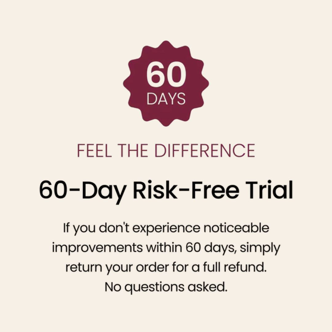 If you are not completely satisfied with your results after 60 days of consistent use, simply contact our support team, and we will issue a full refund of your purchase price. No questions asked.
